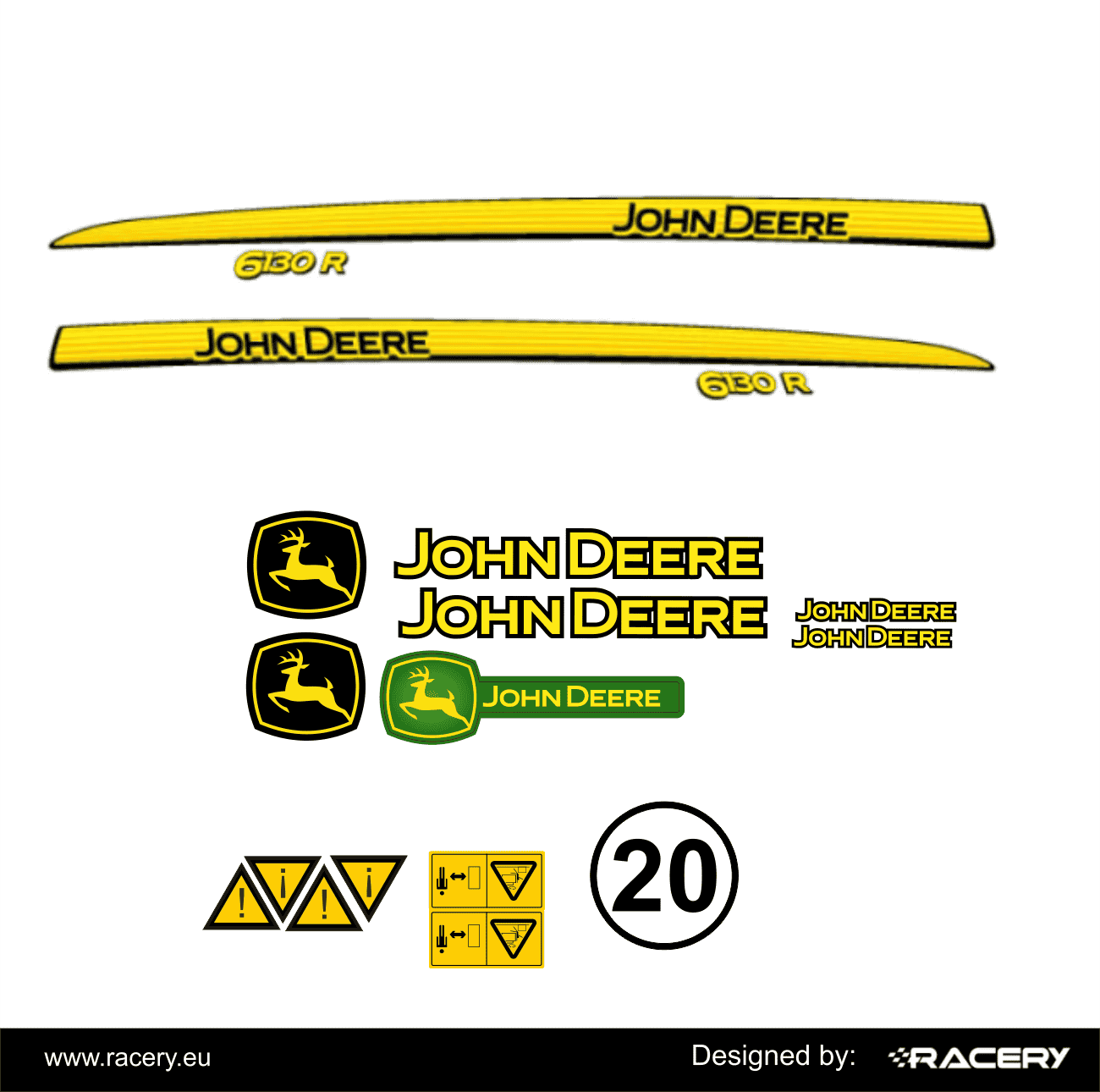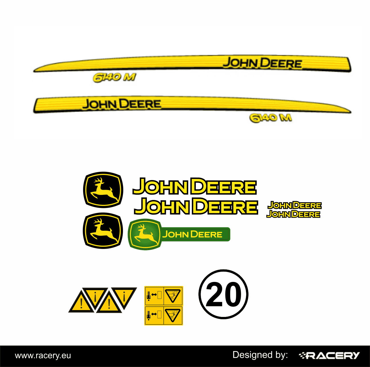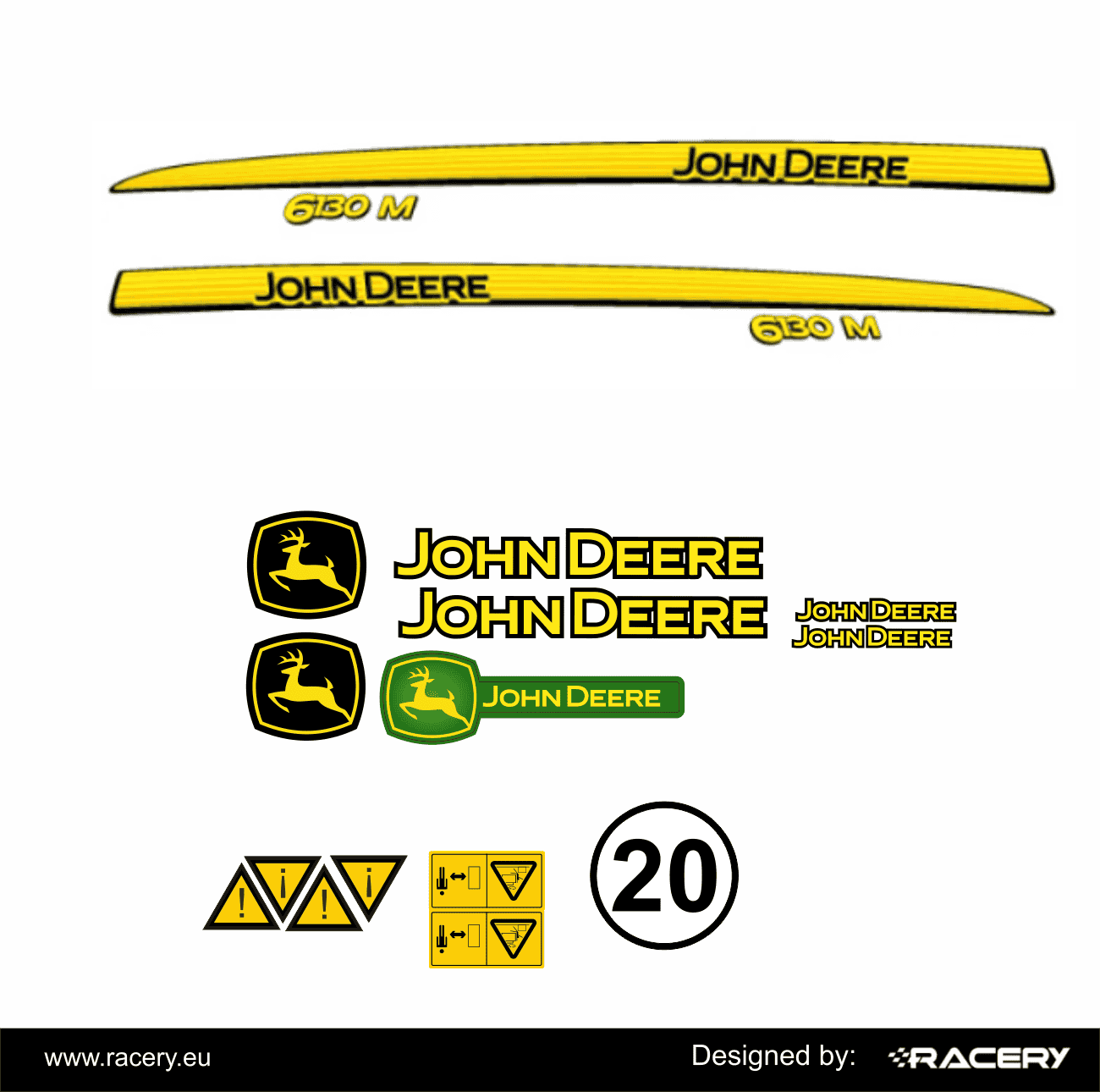 Profesjonalny zestaw naklejek na John Deere 6100D wersje M R D RC i inne . Naklejka na JohnDeere 6100D M. Naklejka odporna na warunki atmosferyczne. Nie jest to OEM. Naklejka wykonana z naciskiem na trwałość tzn. minimalizujemy konieczność stosowania wydruków tła np. czarny, zamiast tego użyta jest folia w pełni czarna ( lub innym koniecznym kolorze) wieloletnia polimerowa. Sam wydruk wykonywany jest metodą UV, jeśli wymaga tego wzór dodatkowo laminujemy. Otrzymujesz maksymalnie trwały produkt.