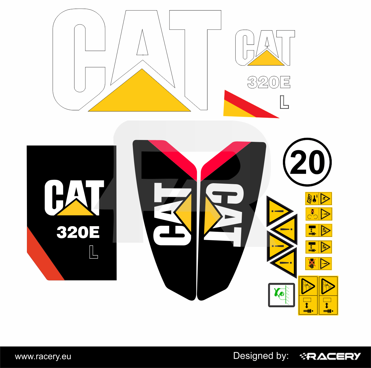Profesjonalny zestaw naklejek na CAT 320E L . Naklejka na 320E L. Naklejka odporna na warunki atmosferyczne.